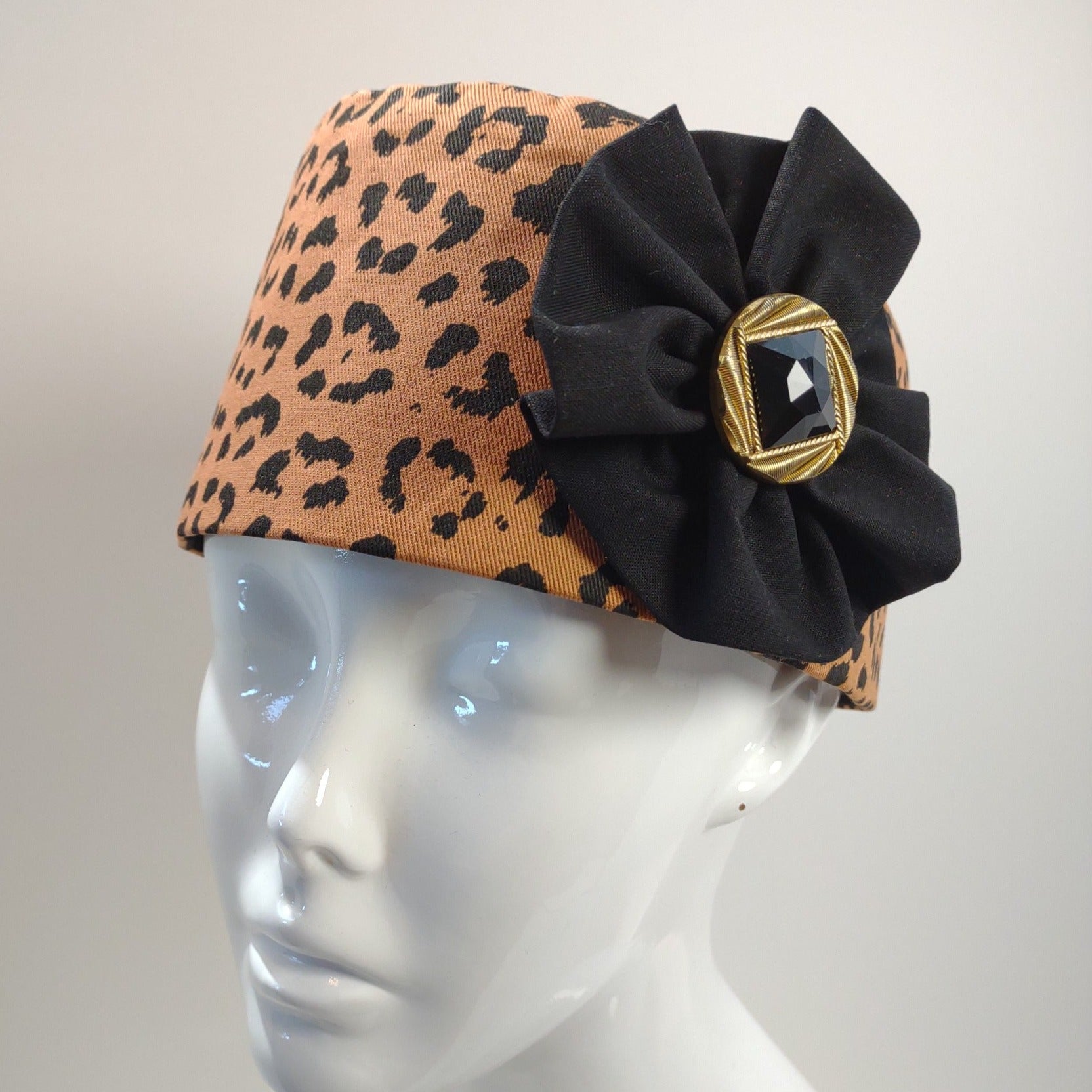 A one-of-a-kind hat featuring animal print and a large fabric flower. This one certainly is a statement piece! This unique hat is also lined with black premium cotton and has a headband stitched in.