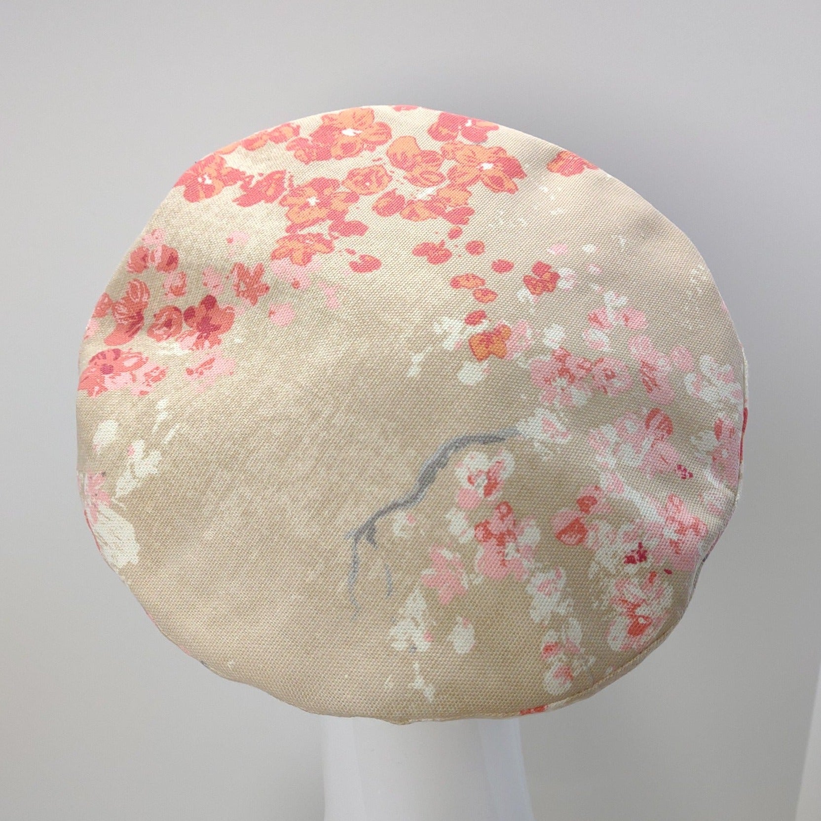 The Cherry Blossom Beret is handmade from a lovely cotton canvas fabric. This little beauty is lined with a 100% premium cotton fabric and has a grosgrain sweatband stitched to the inside hat band. The hat is handcrafted with a combination of machine stitching and handstitching.