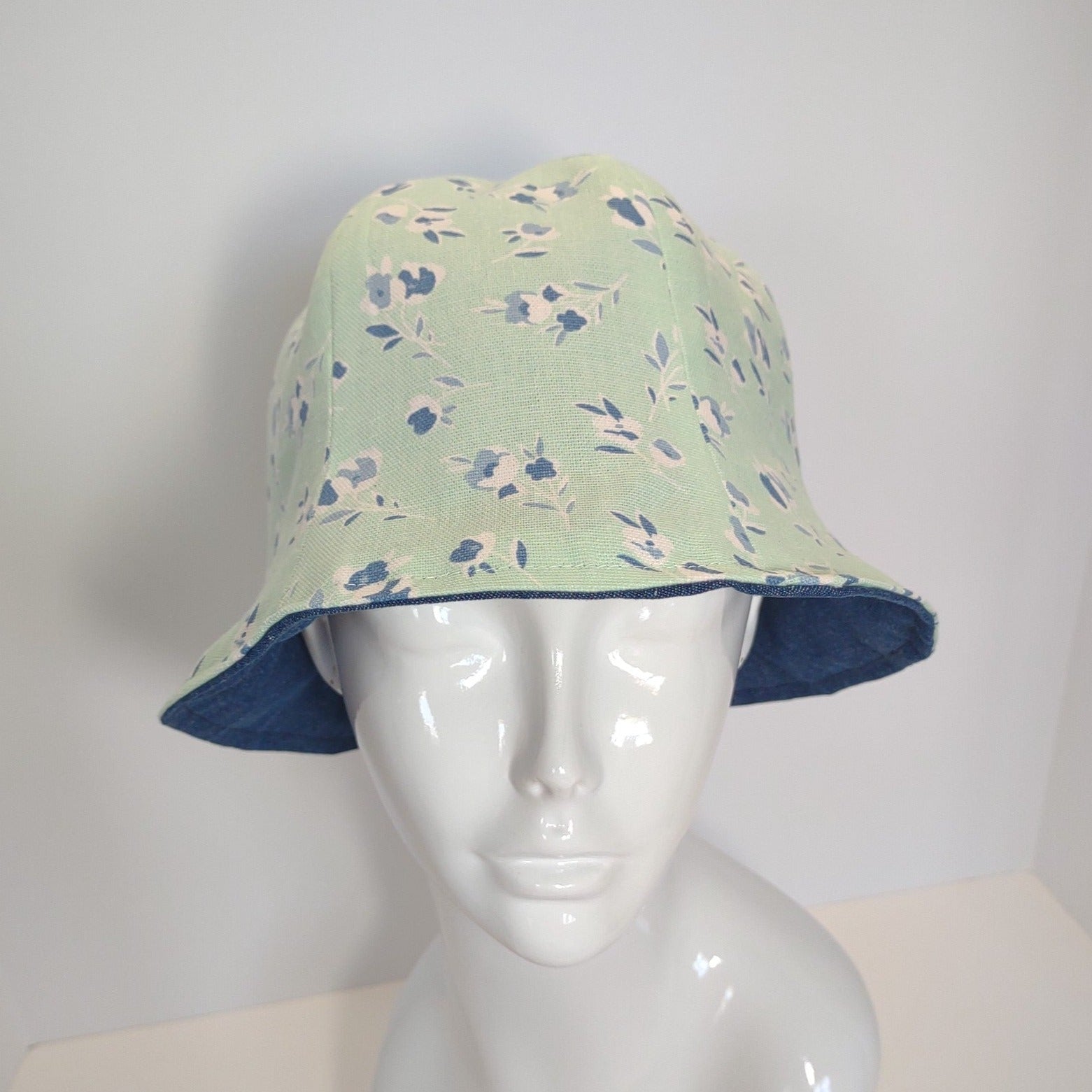 Mint Green Floral and Denim Tulip Hat | Reversible